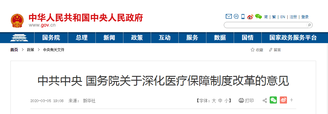 中共中央 國務院關于深化醫療保障制度改革的意見