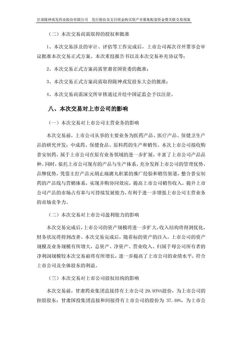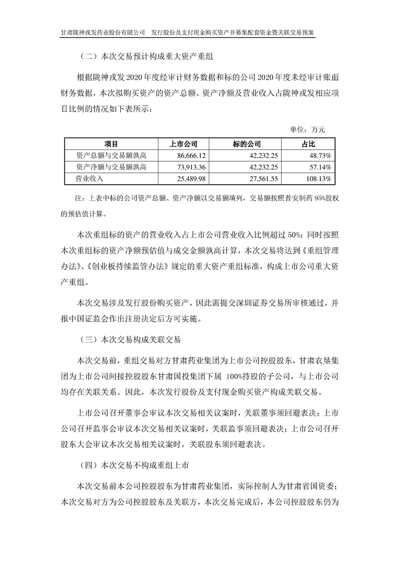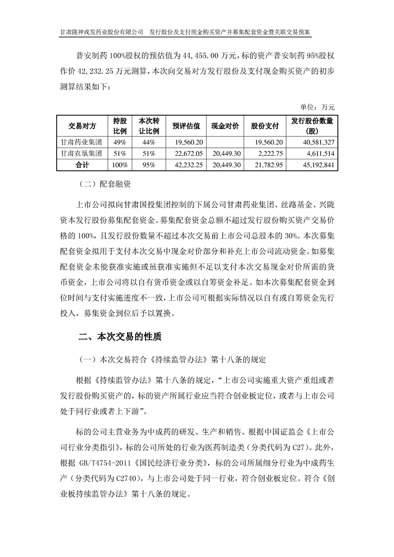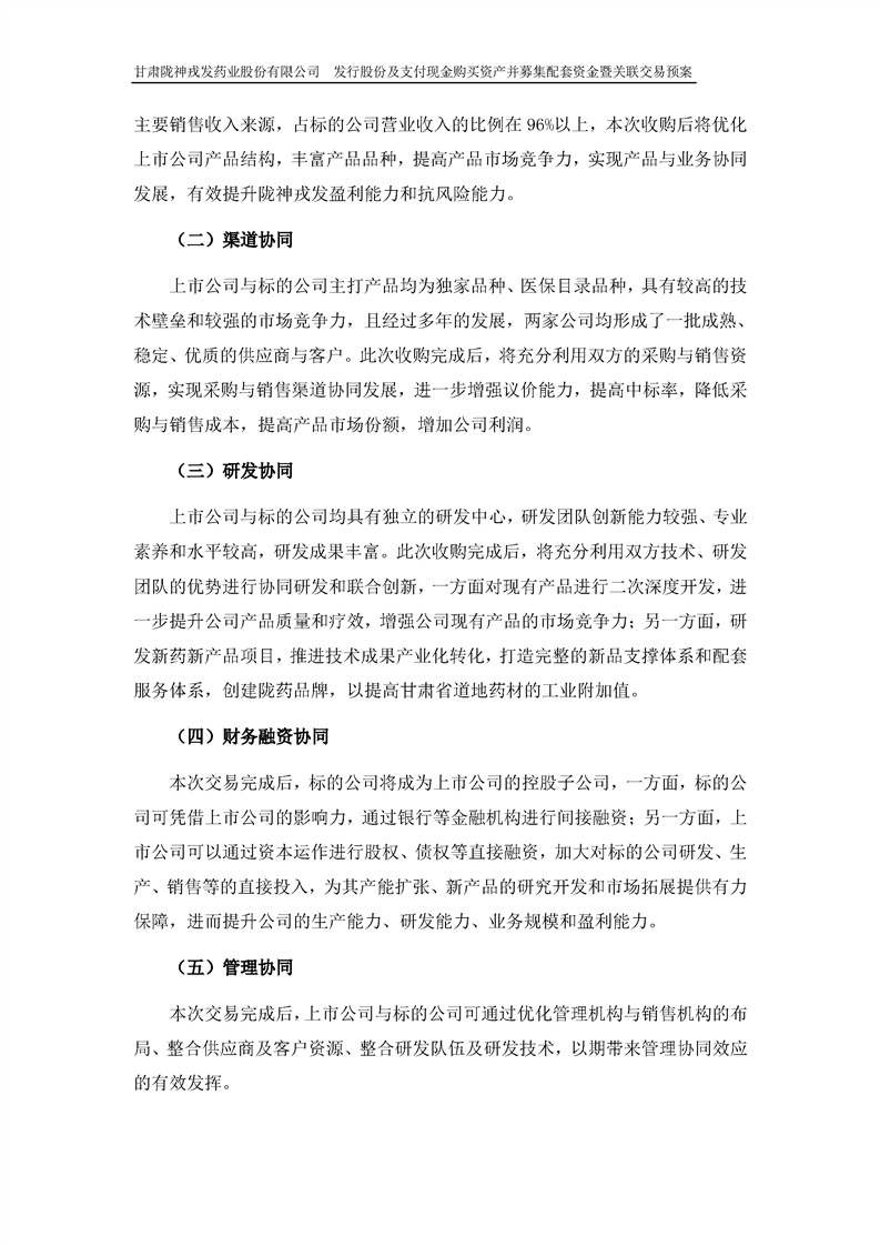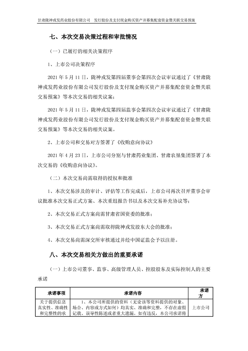 甘肅隴神戎發藥業股份有限公司發行股份及支付現金購買資產并募集配套資金暨關聯交易預案 (摘要)