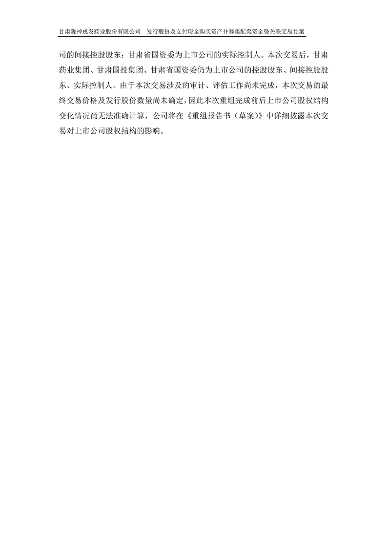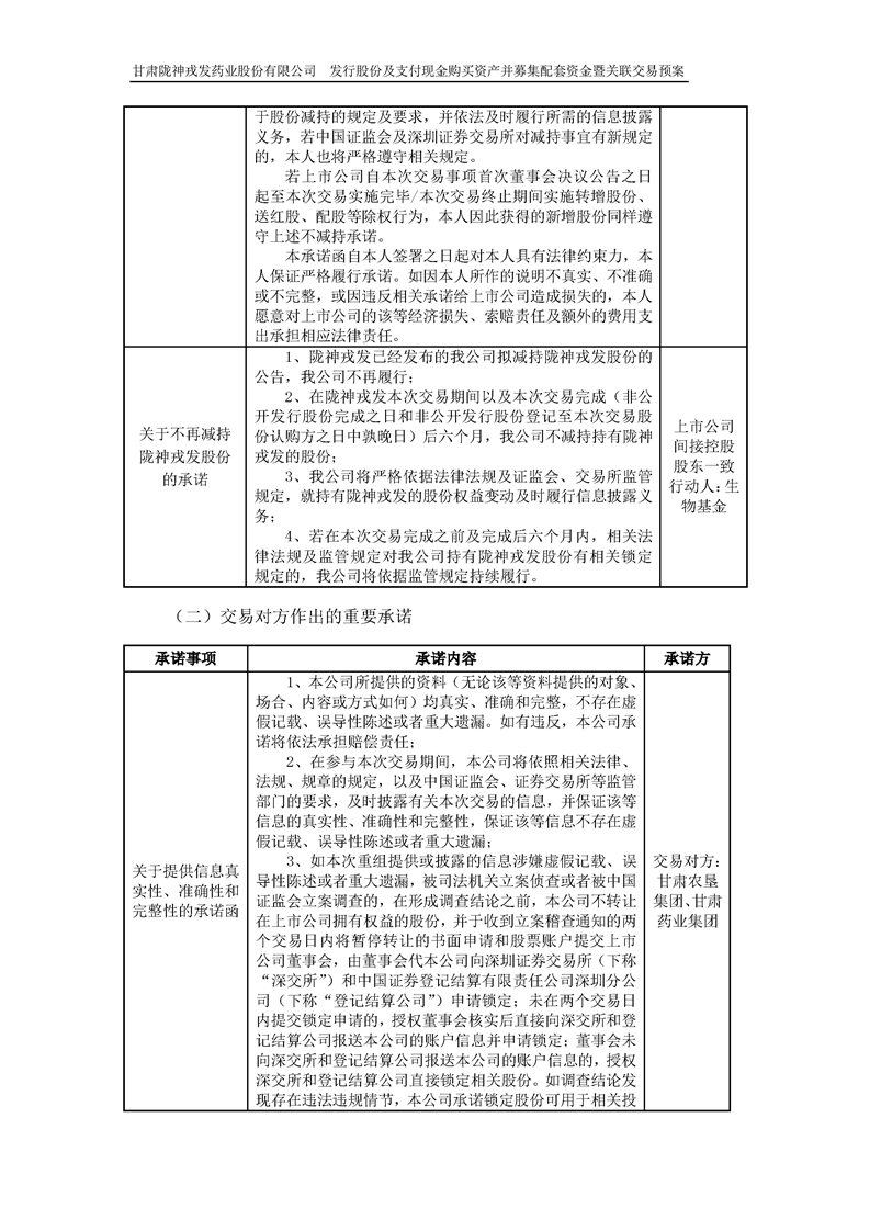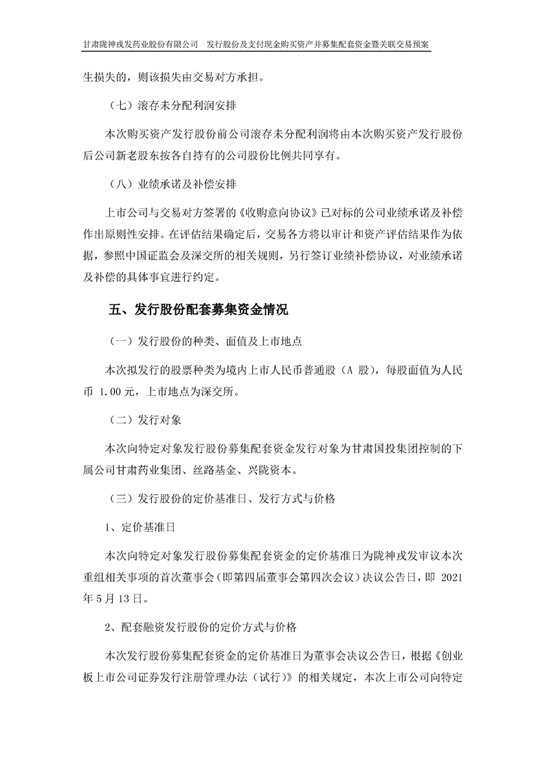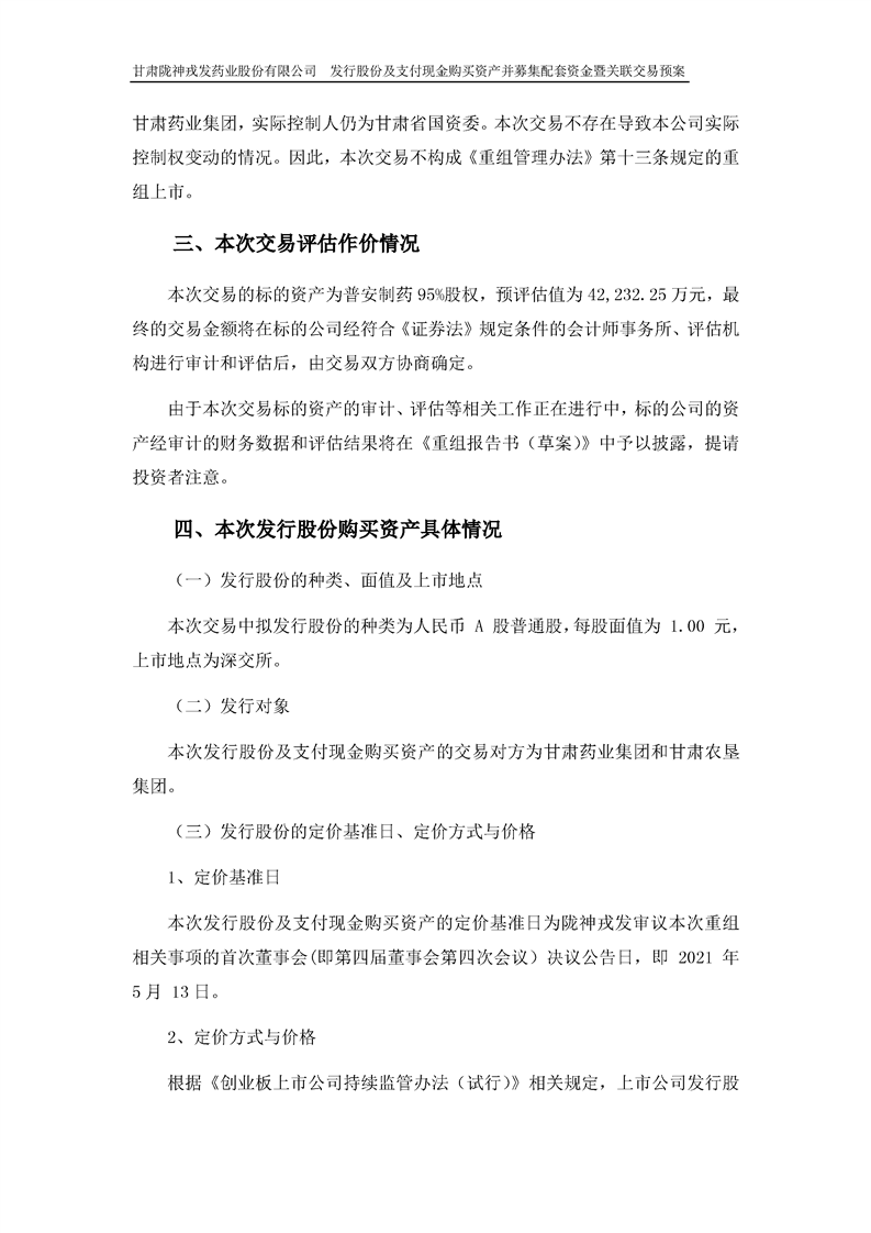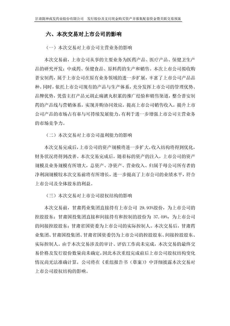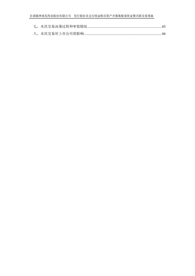 甘肅隴神戎發藥業股份有限公司發行股份及支付現金購買資產并募集配套資金暨關聯交易預案 (摘要)