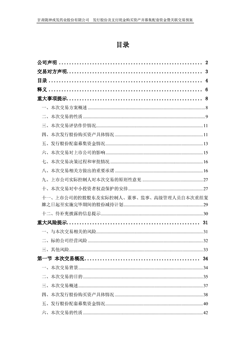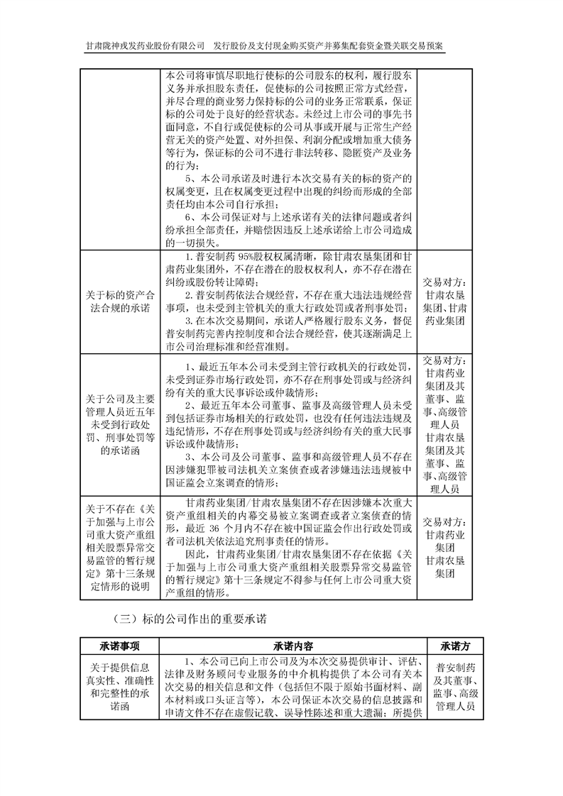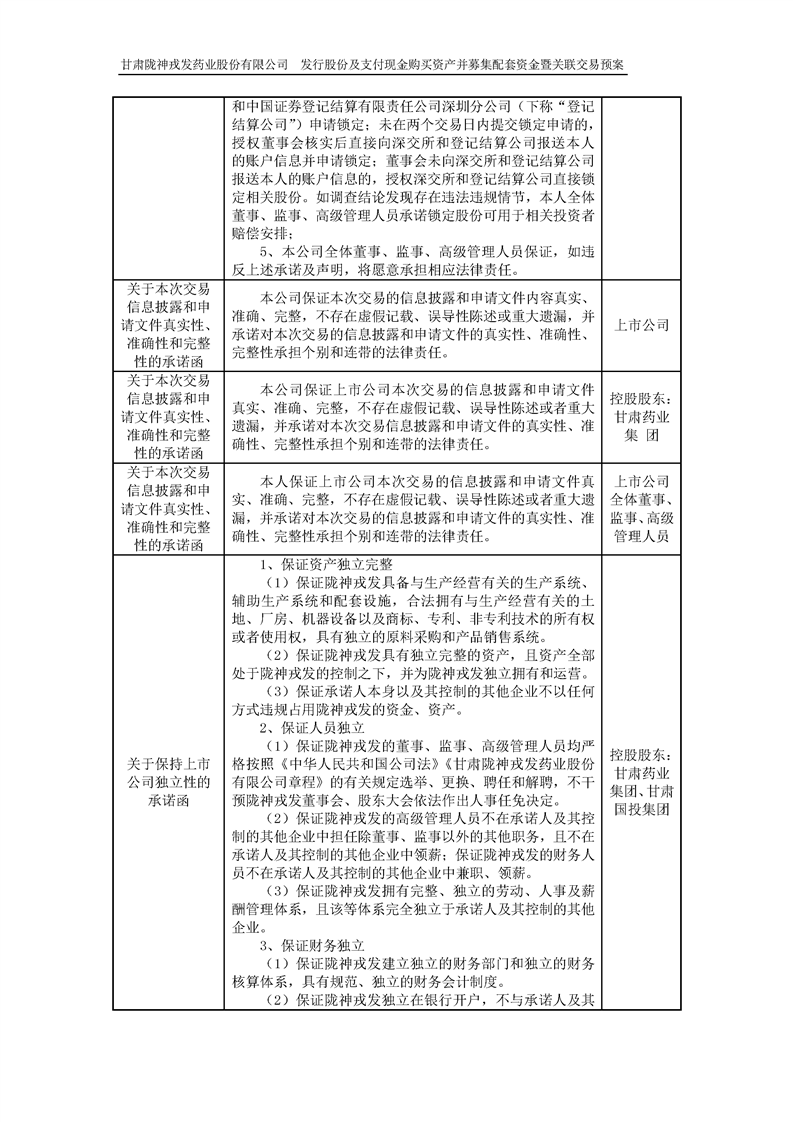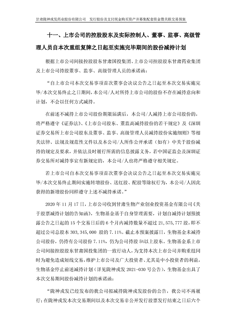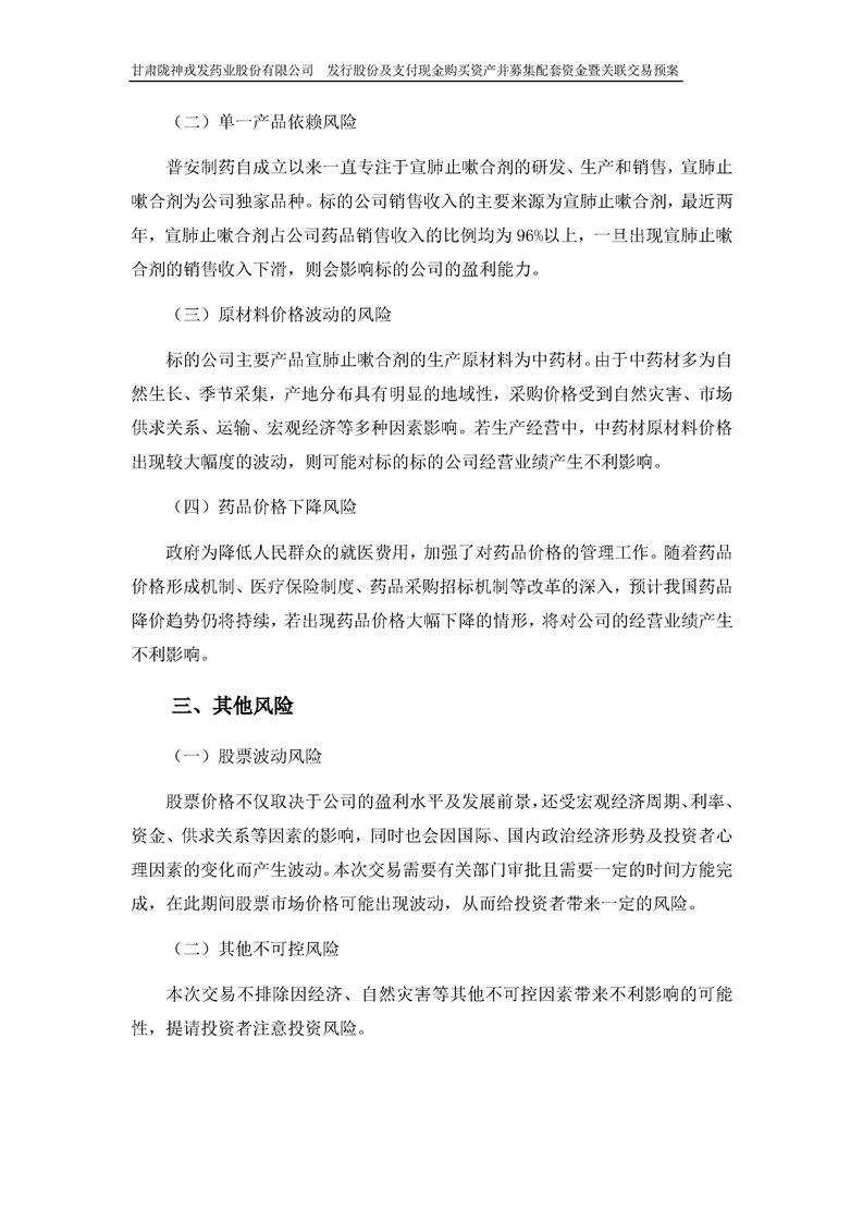 甘肅隴神戎發藥業股份有限公司發行股份及支付現金購買資產并募集配套資金暨關聯交易預案 (摘要)