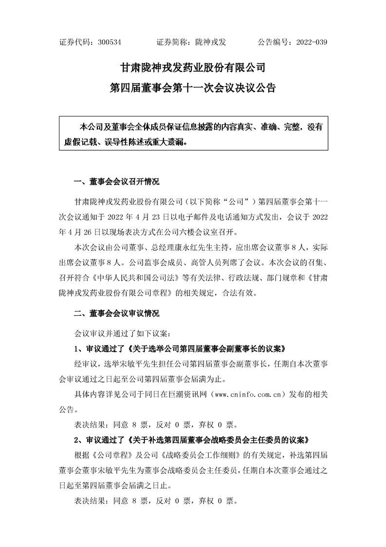 第四屆董事會第十一次會議決議公告