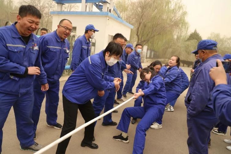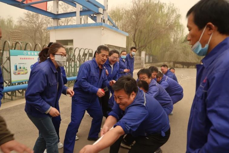 開幕式結束后,普安、普華拔河友誼賽火熱開賽。縱使今天黃沙漫漫,陰陰沉沉,但雙方選手的熱情沒有受到絲毫影響。賽場上參賽隊員奮勇拼搏,賽場邊圍觀觀眾搖旗吶喊,氣氛好不熱烈!