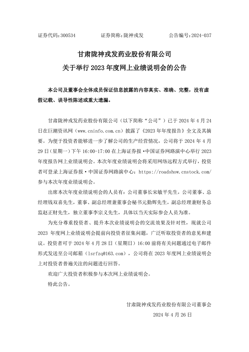 關于舉行2023年度網上業績說明會的公告