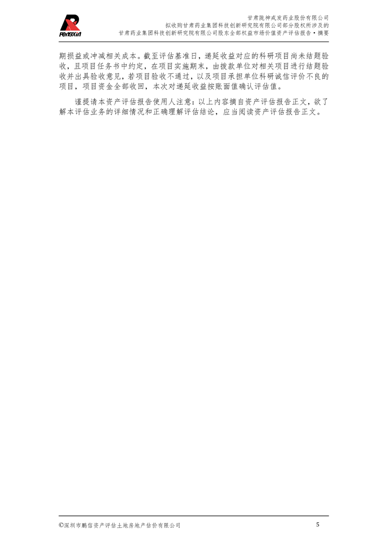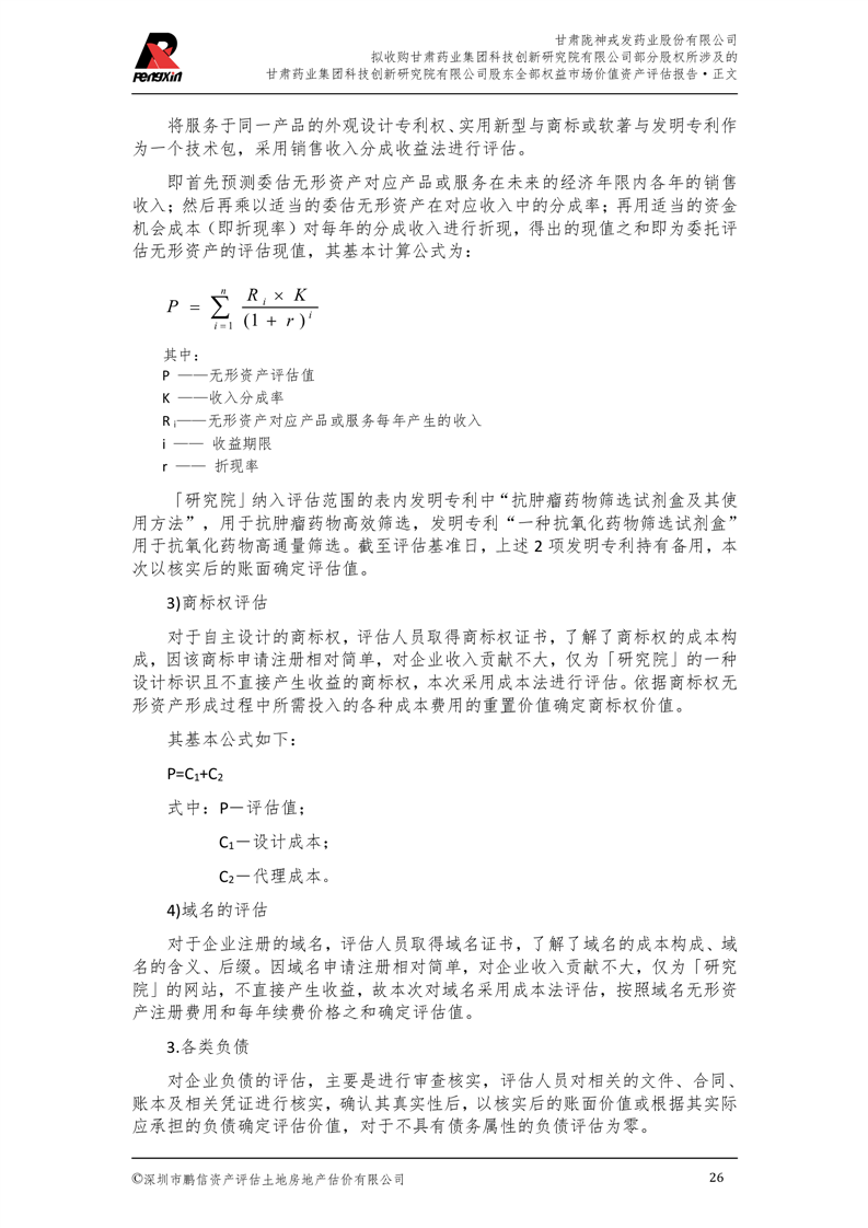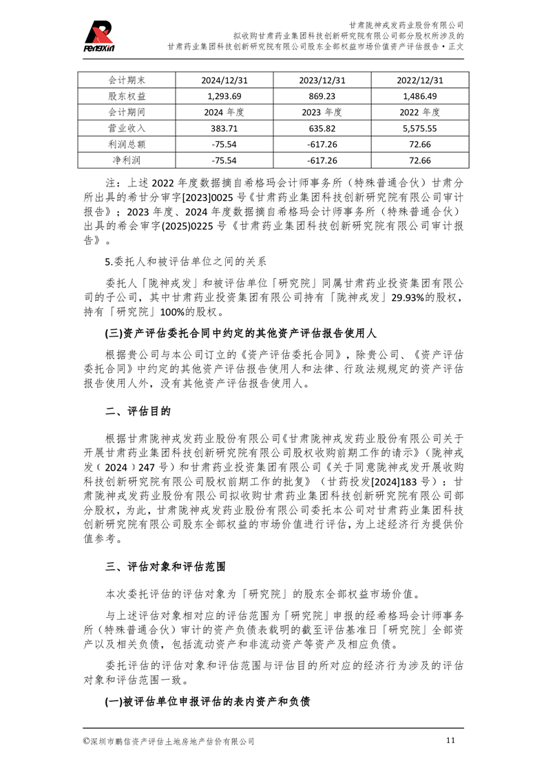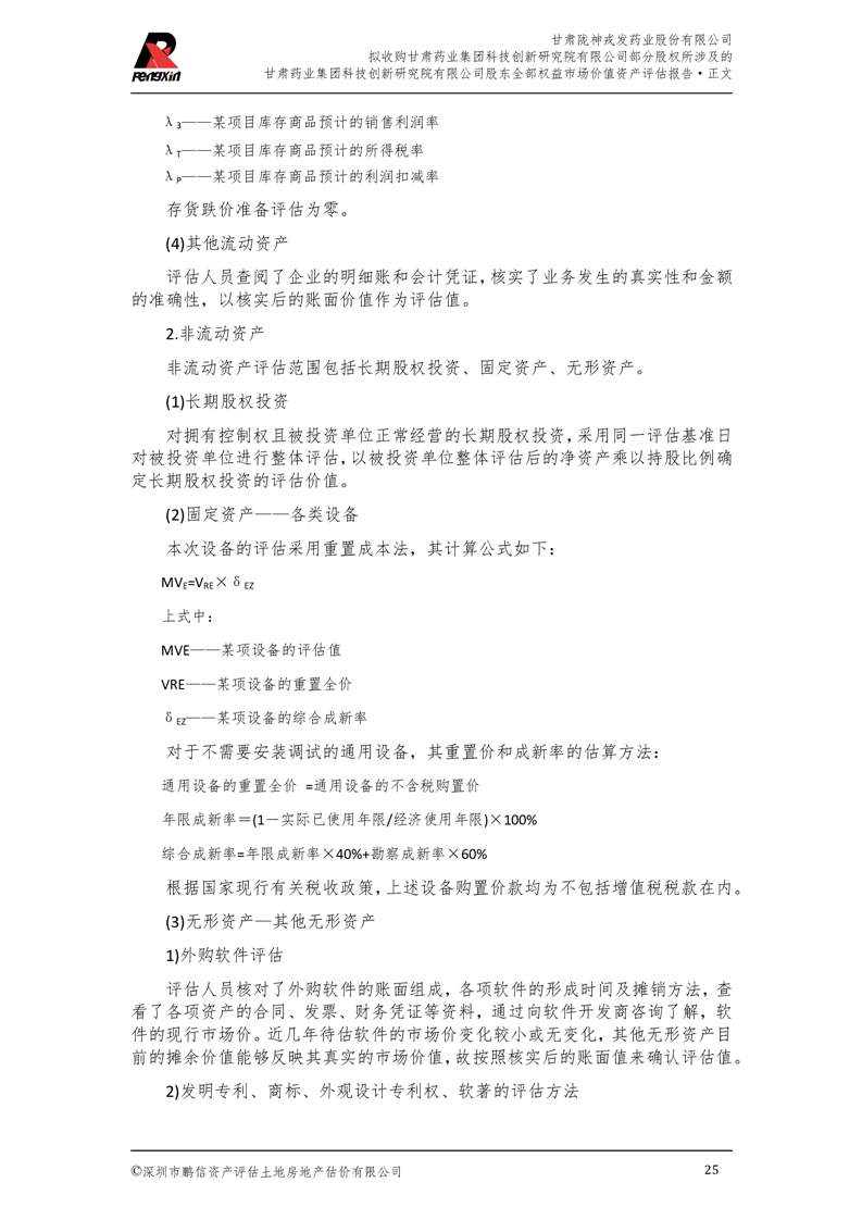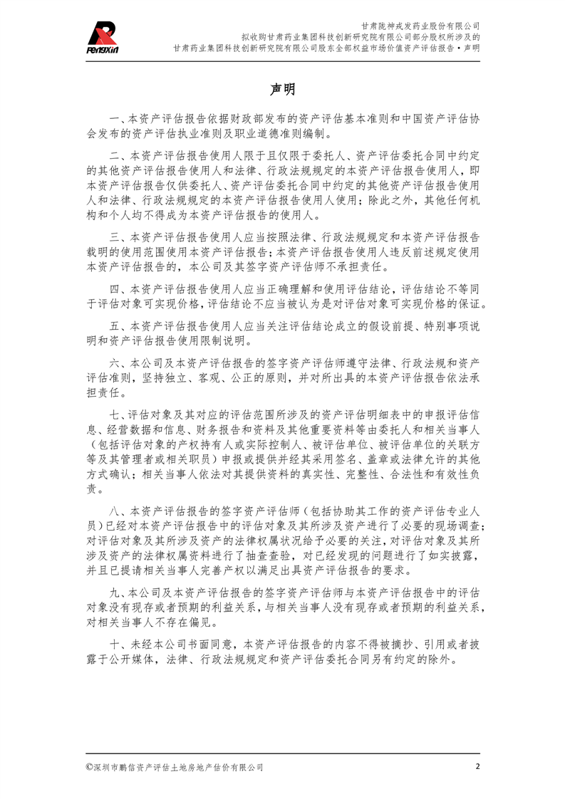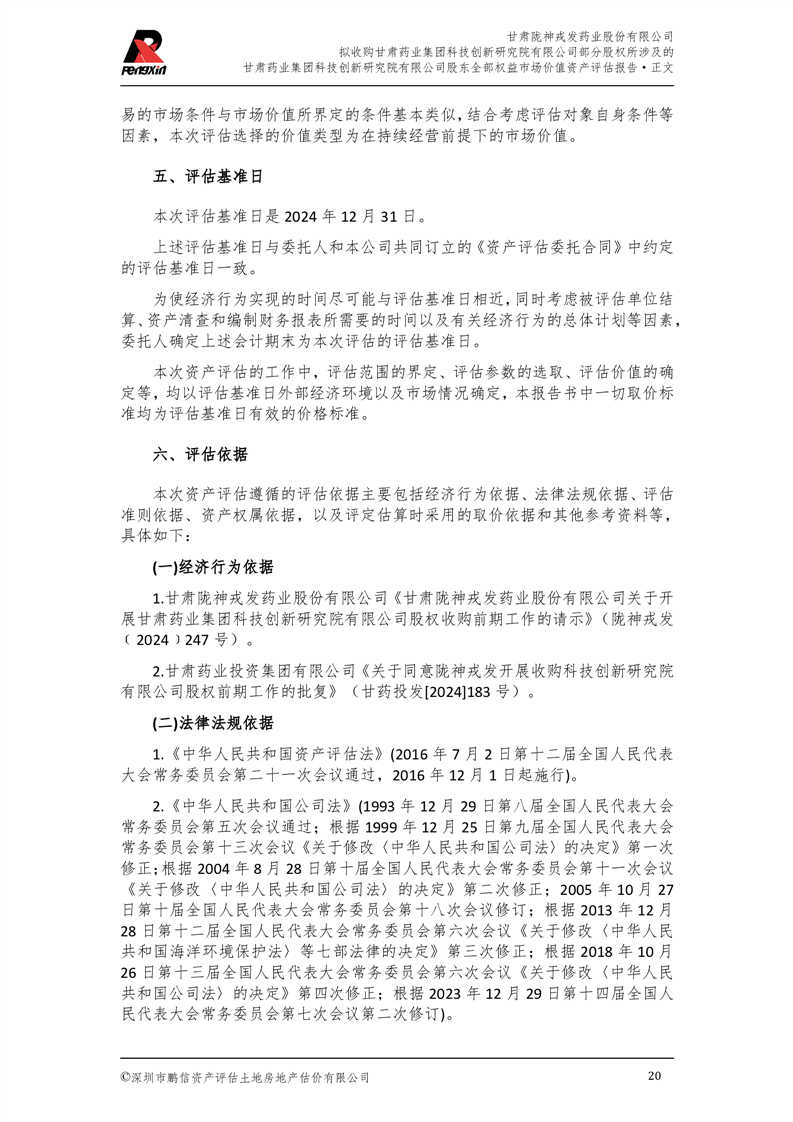 甘肅藥業集團科技創新研究院有限公司股東全部權益市場價值資產評估報告(鵬信資評報字[2025]第S039號)