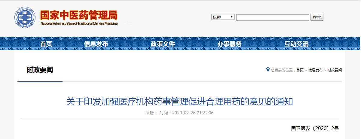 來源:國家中醫藥管理局 作者: 時間:2020-2-27 閱讀: