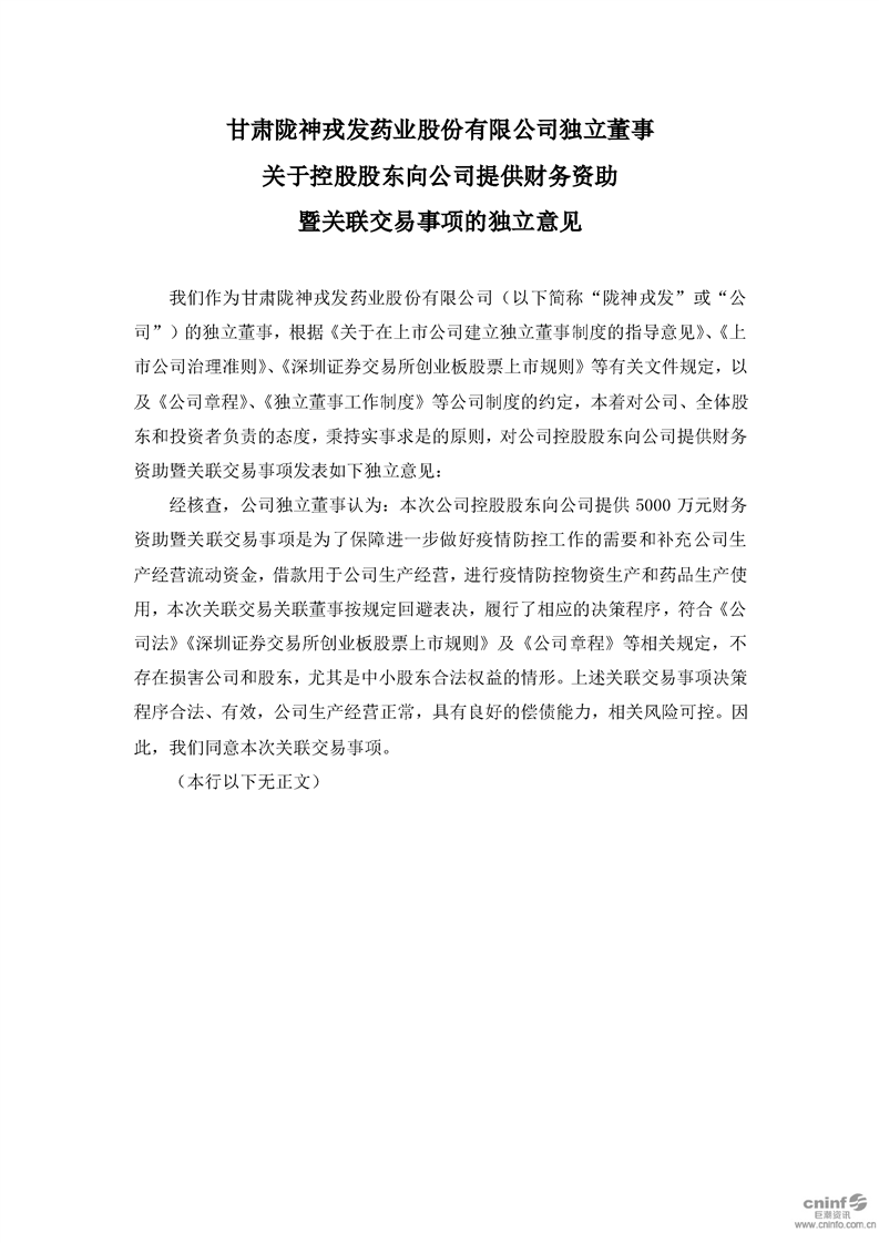 獨立董事關于控股股東向公司提供財務資助暨關聯交易事項的獨立意見