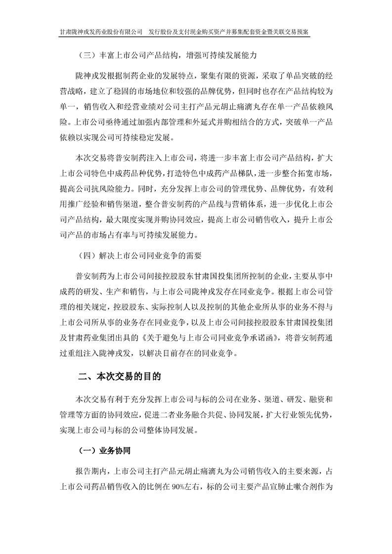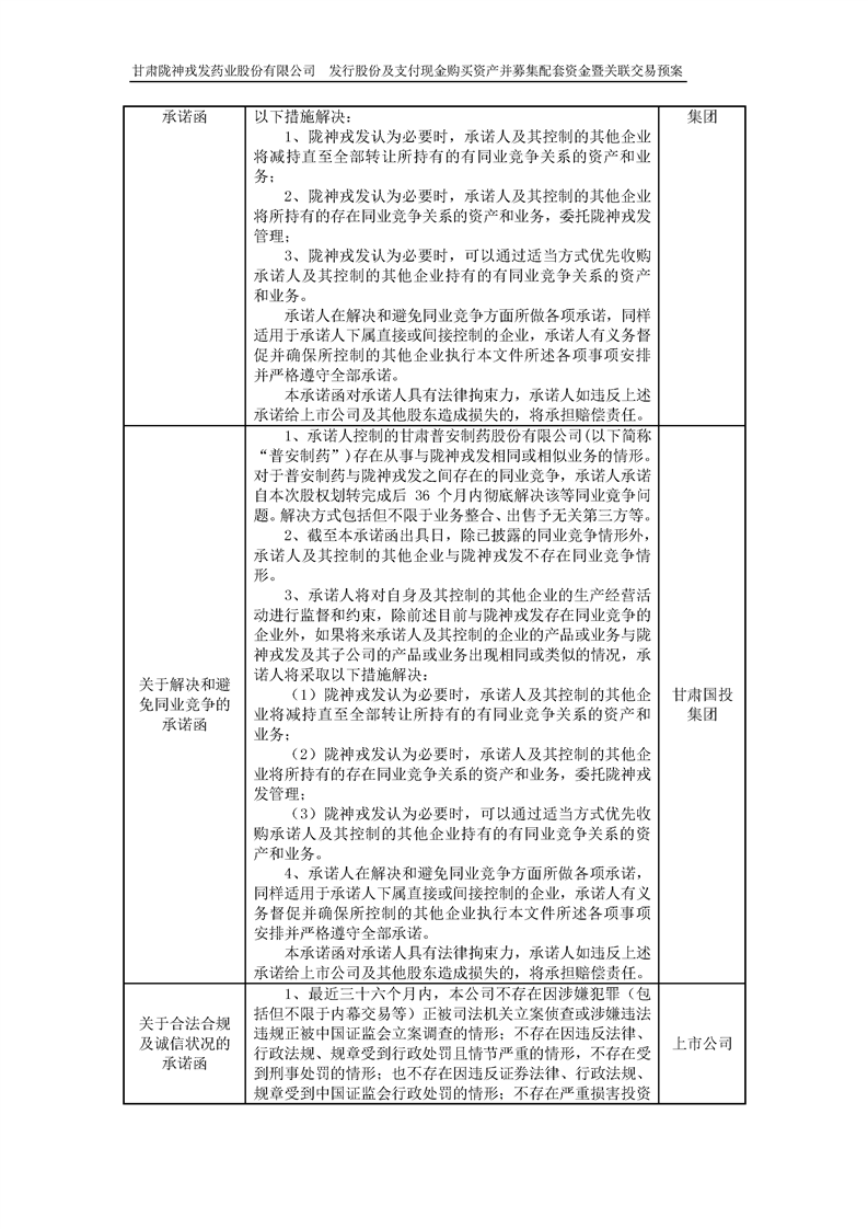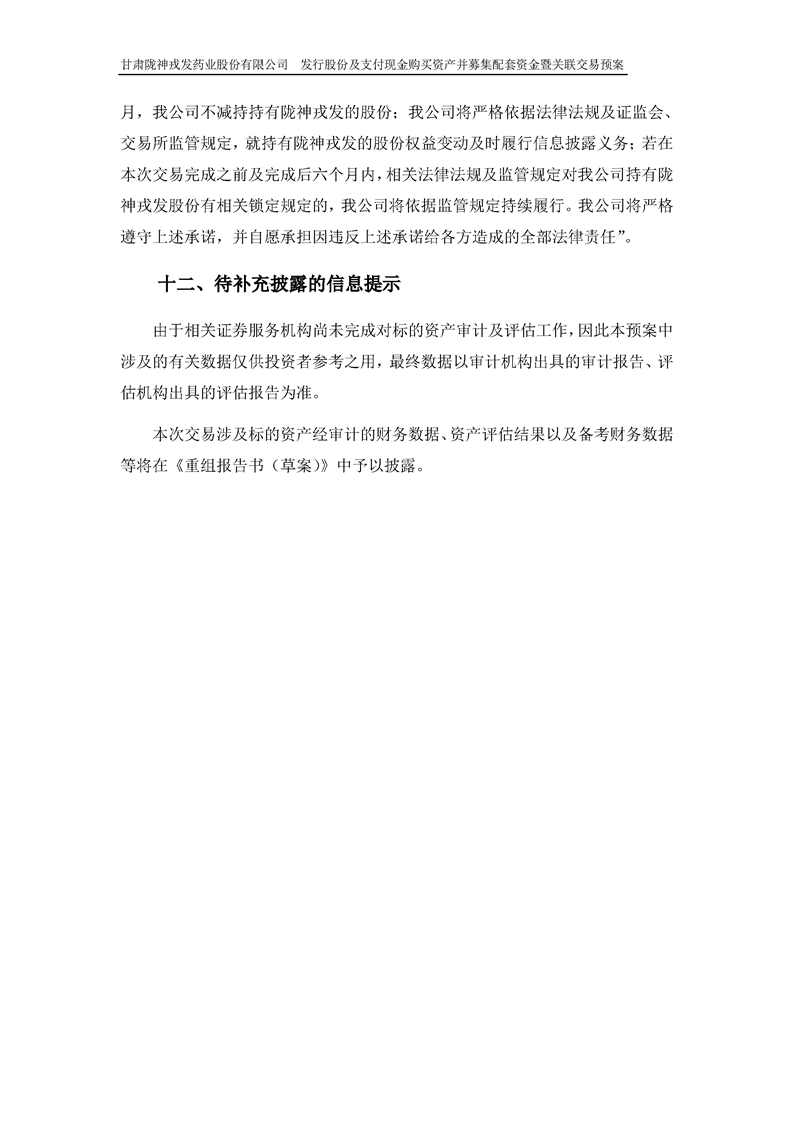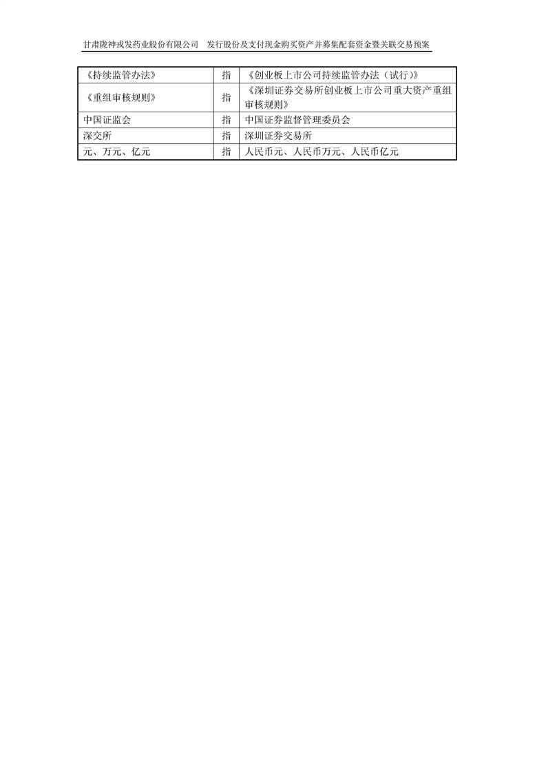 甘肅隴神戎發藥業股份有限公司發行股份及支付現金購買資產并募集配套資金暨關聯交易預案 (摘要)