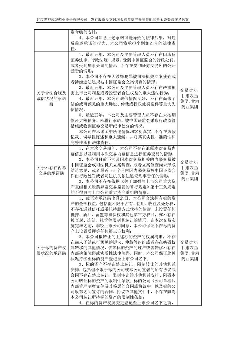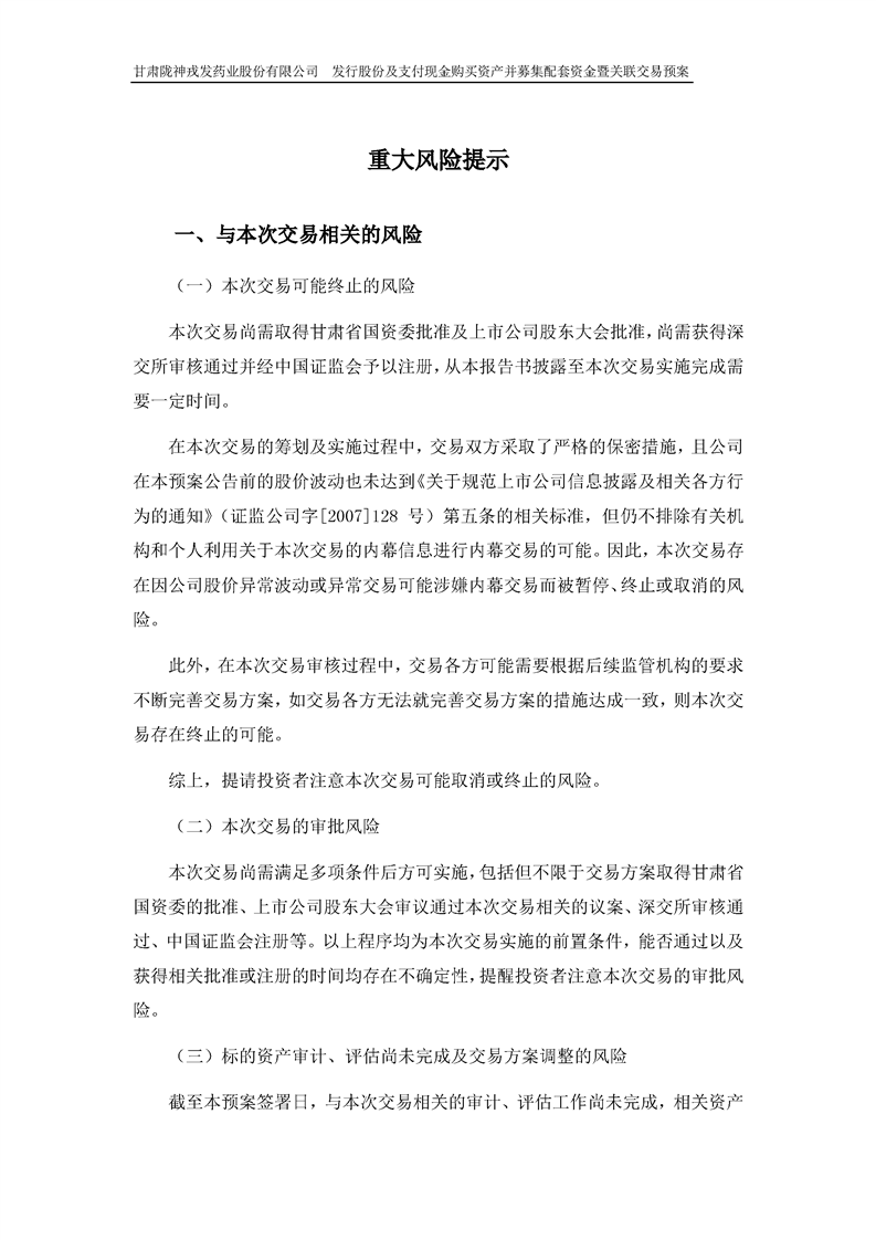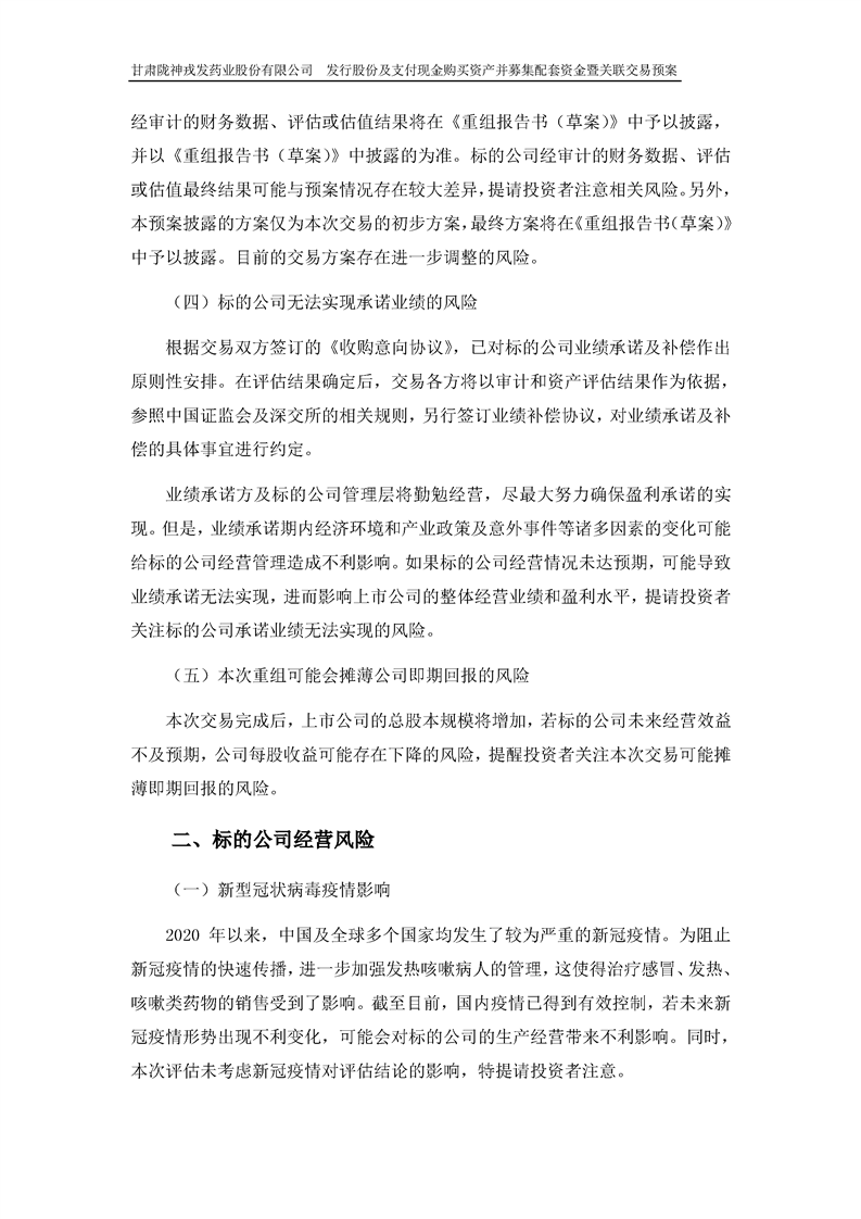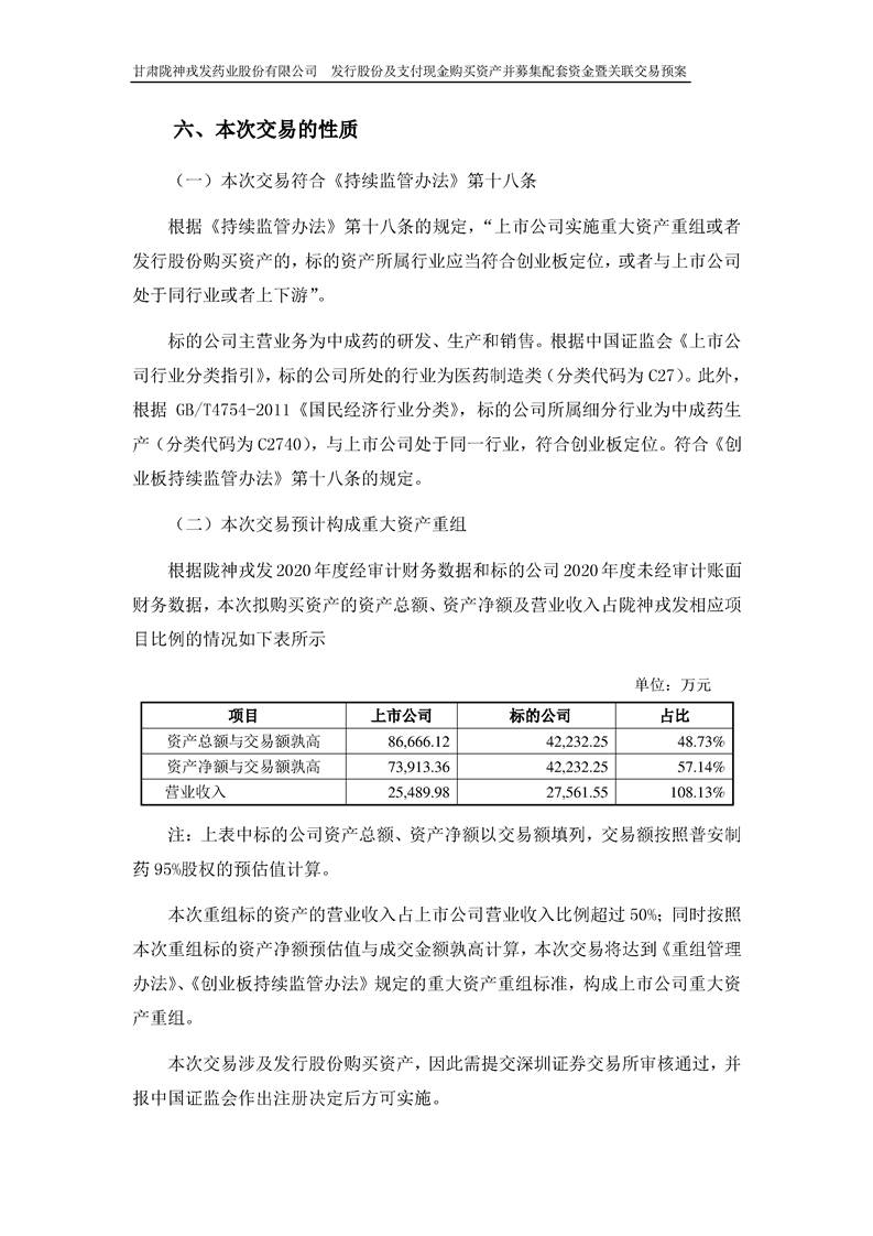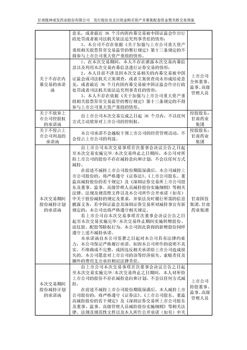 甘肅隴神戎發藥業股份有限公司發行股份及支付現金購買資產并募集配套資金暨關聯交易預案 (摘要)