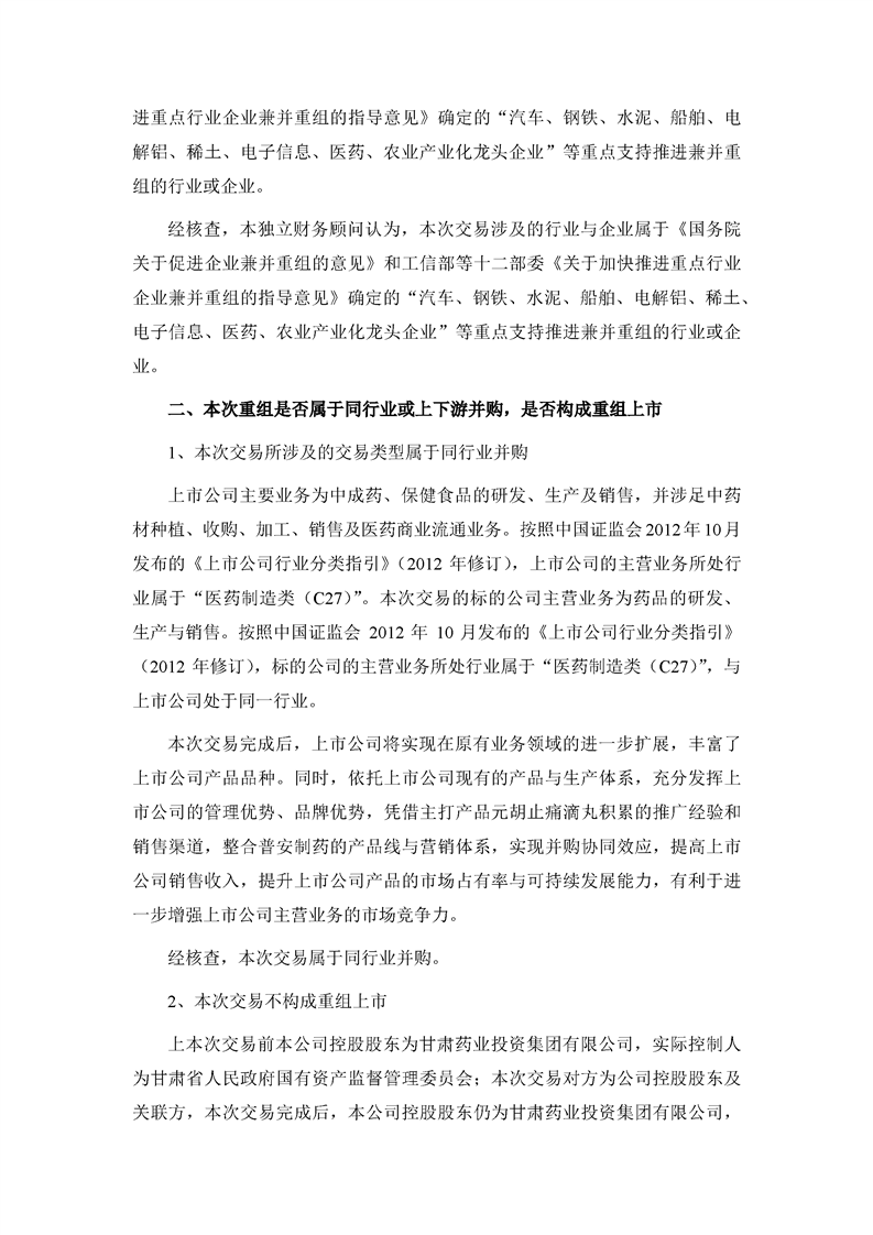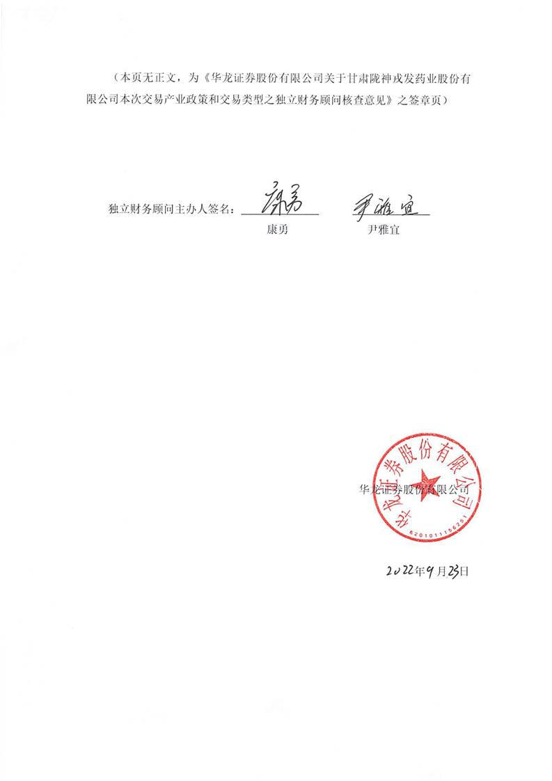 華龍證券股份有限公司關于甘肅隴神戎發藥業股份有限公司本次交易產業政策和交易類型之獨立財務顧問核查意見