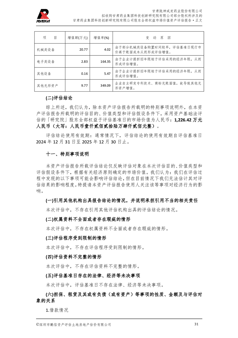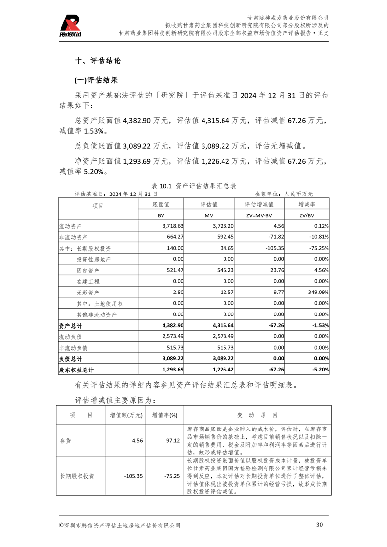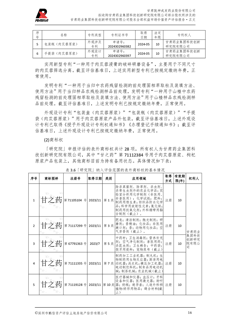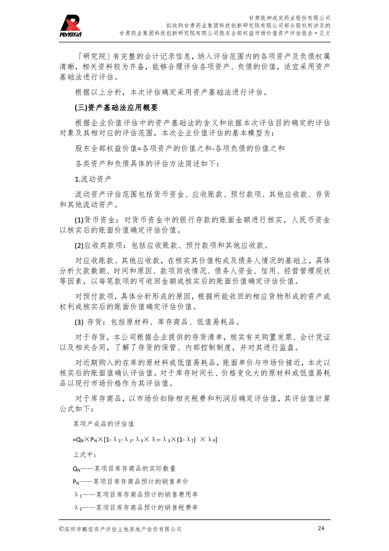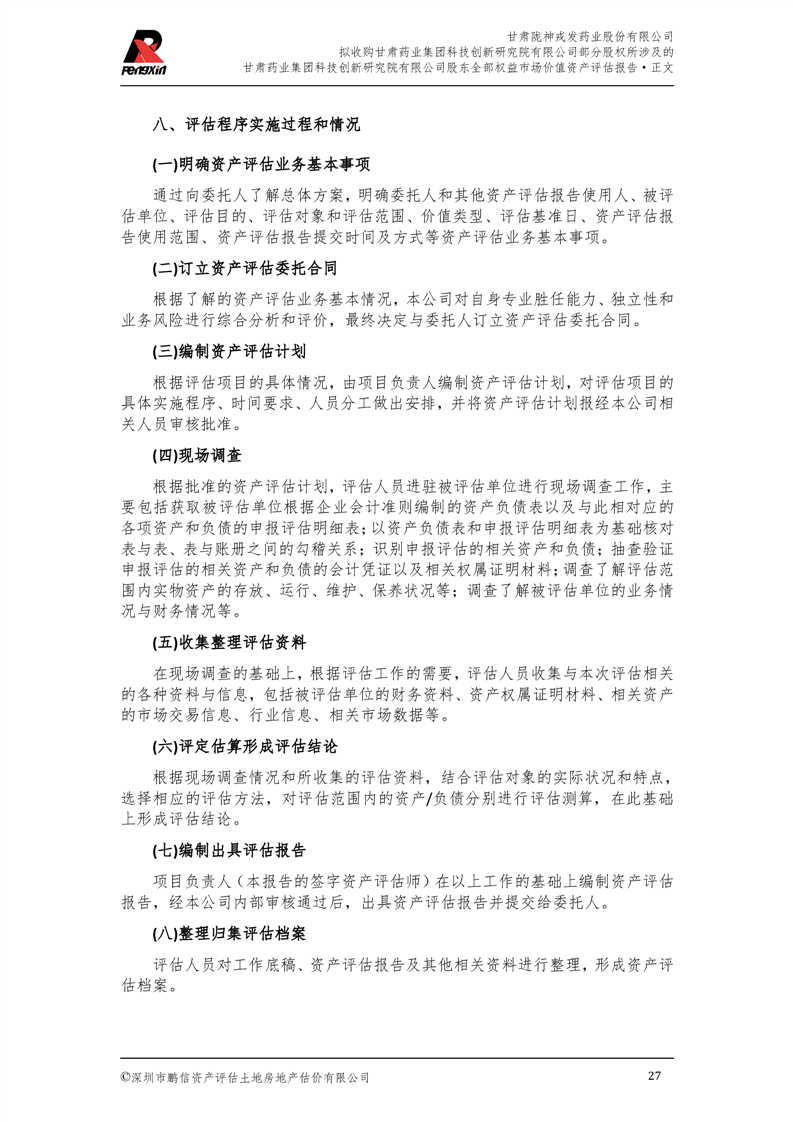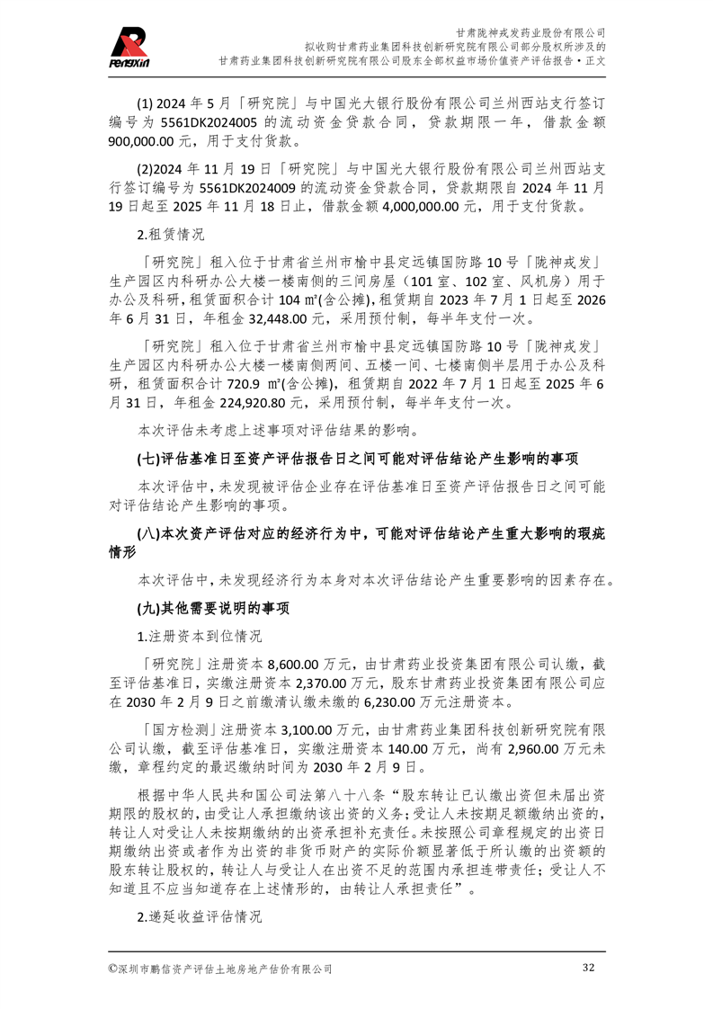 甘肅藥業集團科技創新研究院有限公司股東全部權益市場價值資產評估報告(鵬信資評報字[2025]第S039號)