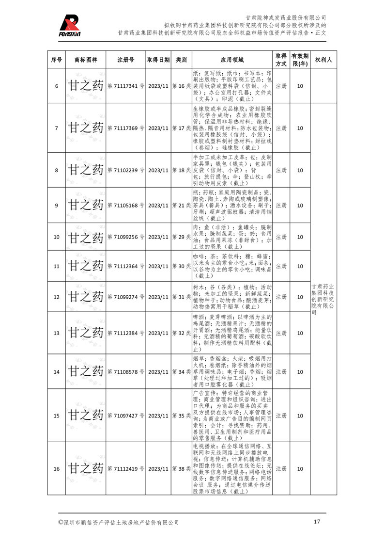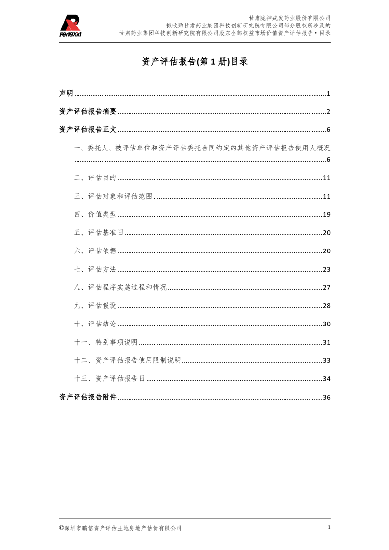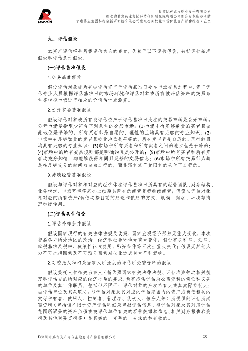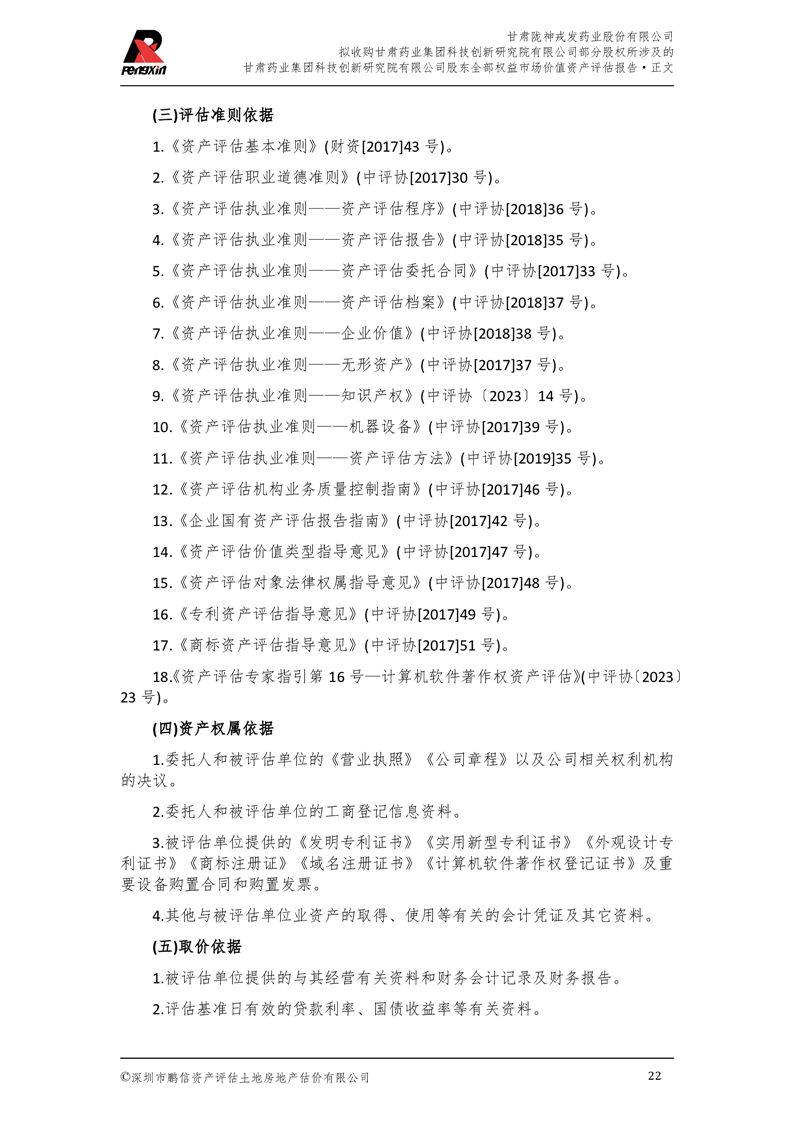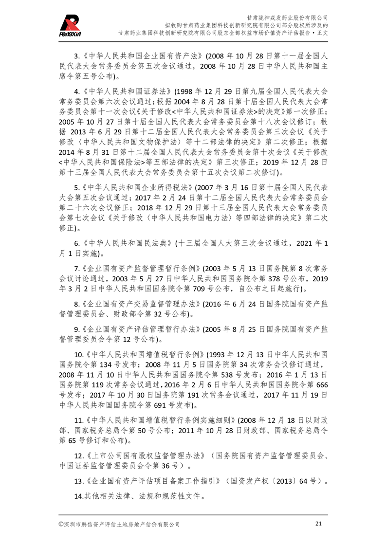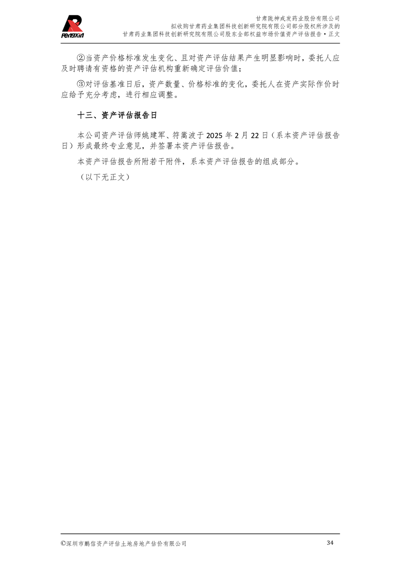 甘肅藥業集團科技創新研究院有限公司股東全部權益市場價值資產評估報告(鵬信資評報字[2025]第S039號)